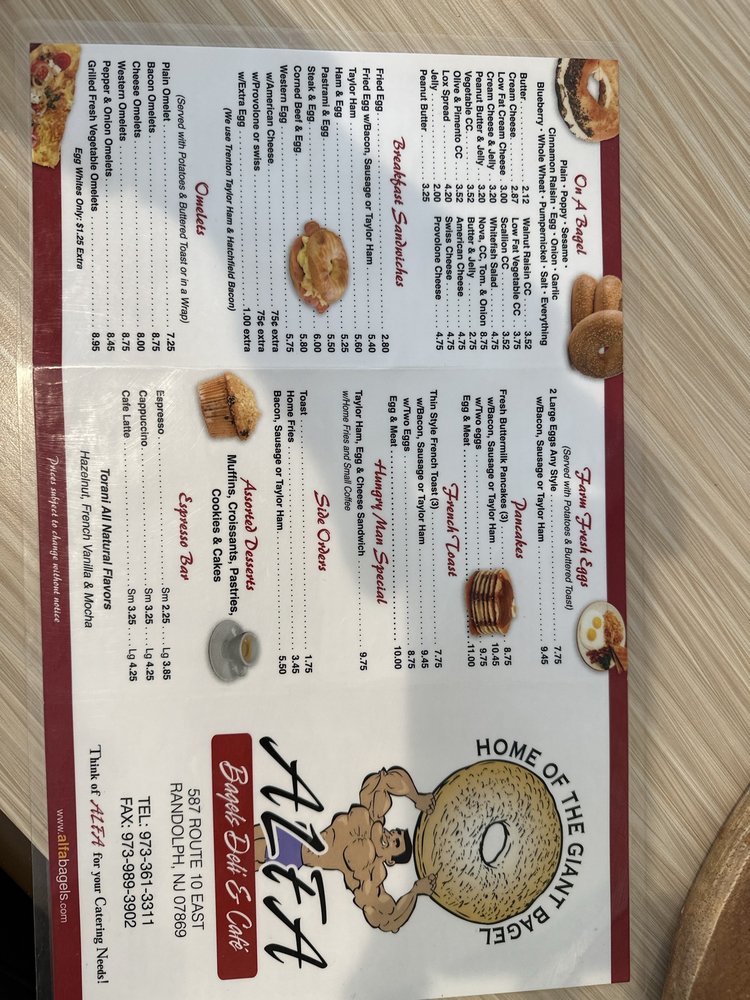 Introducing Alfa Bagels, a beloved spot in Randolph, NJ, known for its wide range of delicious bagels and breakfast sandwiches. The menu features options like butter, cream cheese, lox spread, and various breakfast combinations. Customers rave about the fluffy bagels, generous spreads, and friendly service. Alfa Bagels is praised for its quick service, reasonable prices, and ample parking. Reviews mention the outstanding quality of the bagels, with some claiming them to be the best in Morris County. The bagels are described as large, soft, and airy, not dense, and are often served warm. While the parking can be challenging and the lines long, the overall experience is worth it for the top-notch bagels. Don't miss out on trying the popular Jersey Meat Egg and Cheese sandwich! Visit Alfa Bagels for a satisfying breakfast or brunch experience.